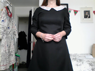 This is the finished dress, complete with contrast collar. Pretty?