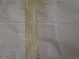 When it came to making the second dress I cut the front and back pattern pieces along the line where it says "lengthen or shorten here" and inserted, rather messily a two inch strip of paper . This is now my new pattern.