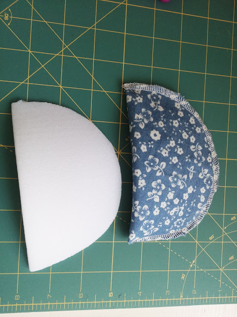 If they are still too wide for the dress then simply trim the top curved edges a little. And they look nicer covered so all I did was to fold some of my dress fabric over them and whizz round with the overlocker. Simple . Whatever you do though don't let a single pin anywhere near your overlocker when you are sewing, you can cause serious damage to your machine or to yourself!
