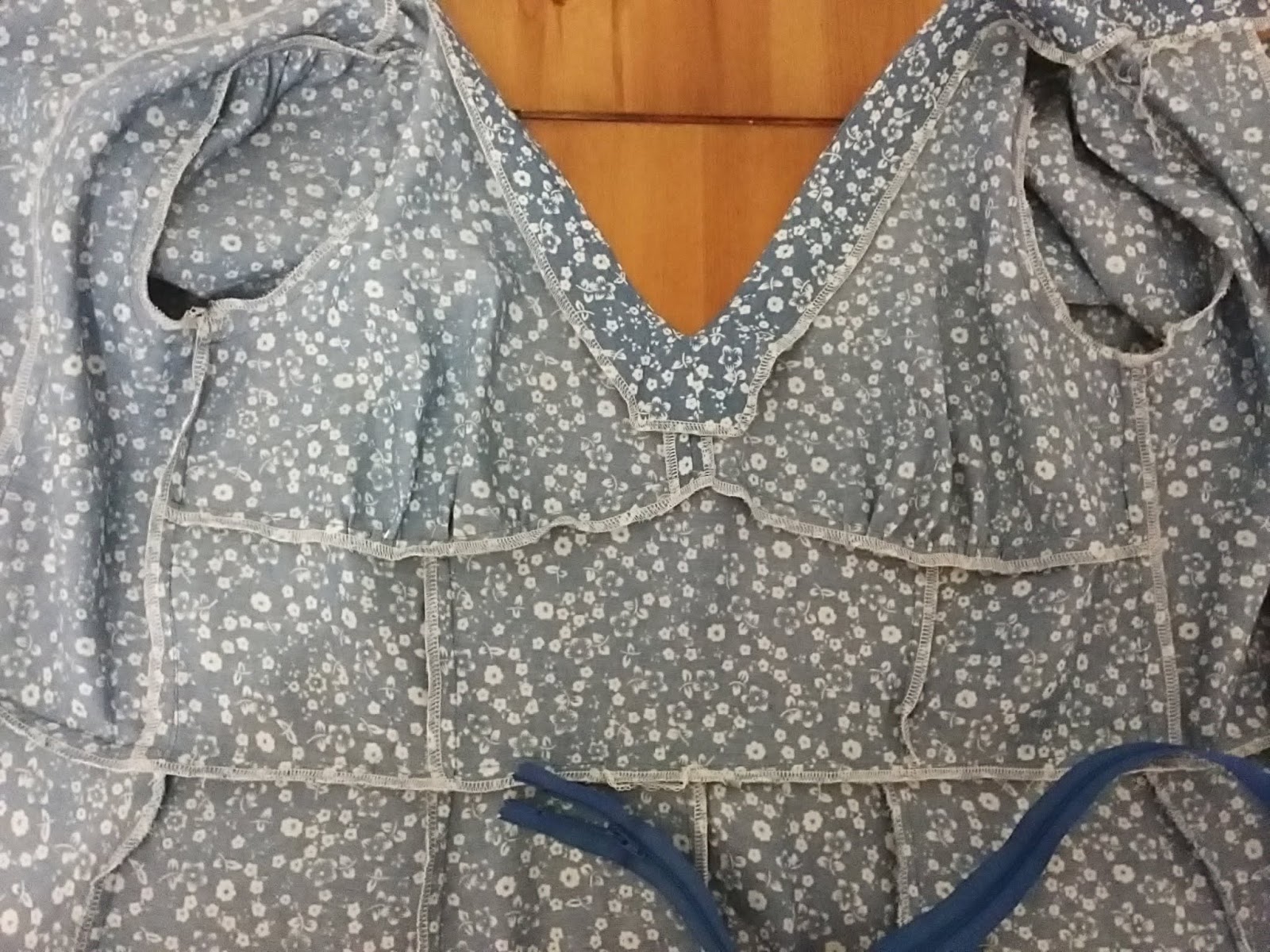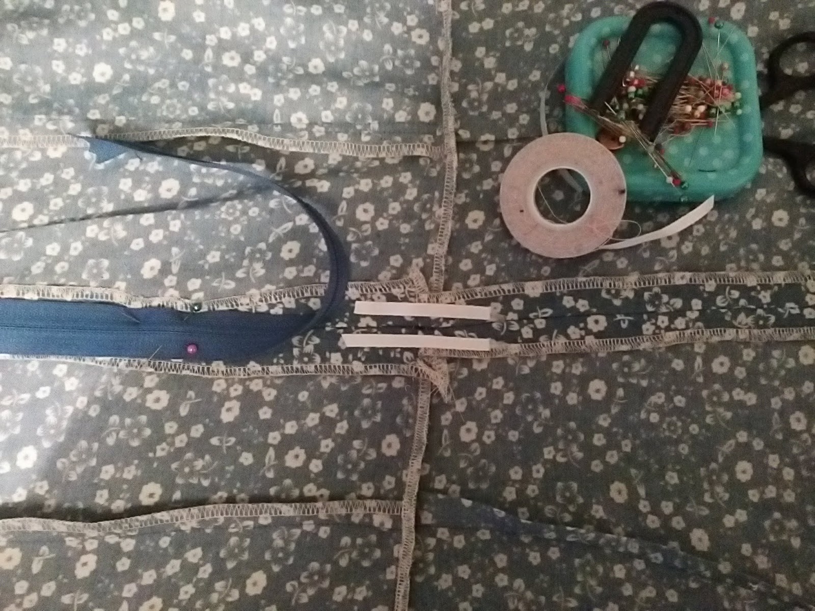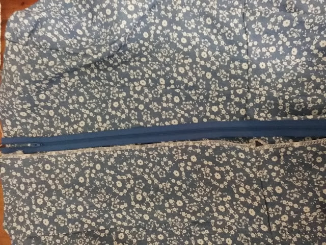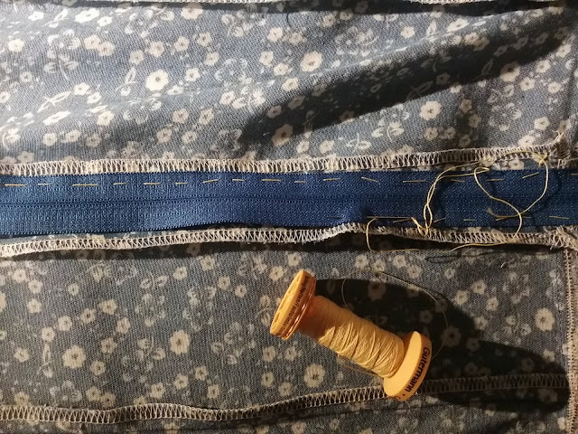 This is the inside of my dress after the seams have been pressed and neatened. How is it that I never have exactly the correct shade of zipper? And thread for that matter. It doesn't matter that much because it will not be seen once it is sewn in place.