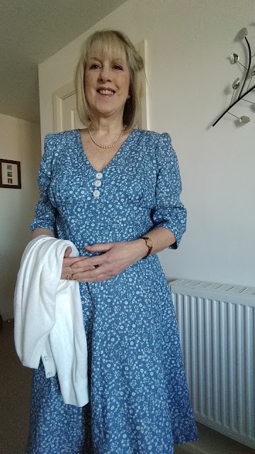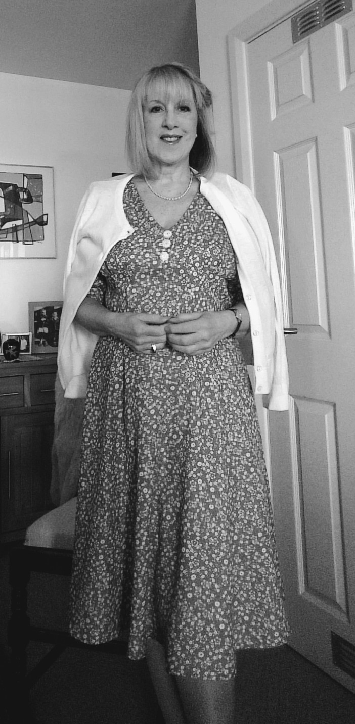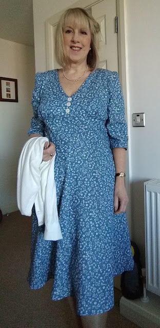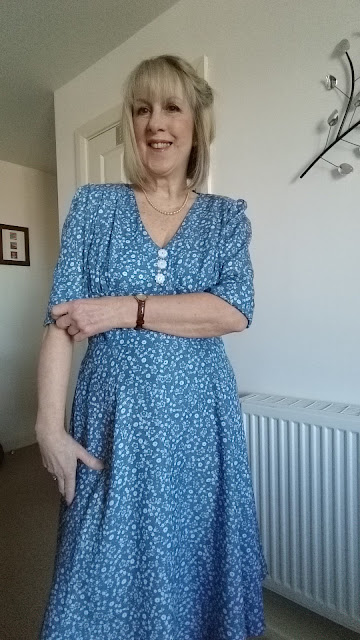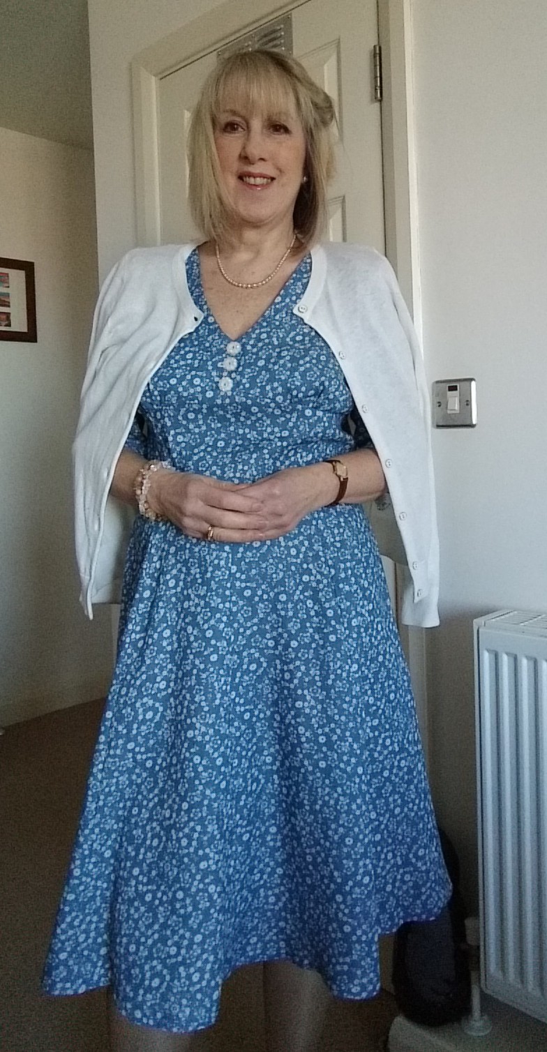 I am really delighted with my dress, it will be great to wear in the summer. I accessorised it with pearls and block heeled shoes. I promise to talk about shoes and accessories in my next post.