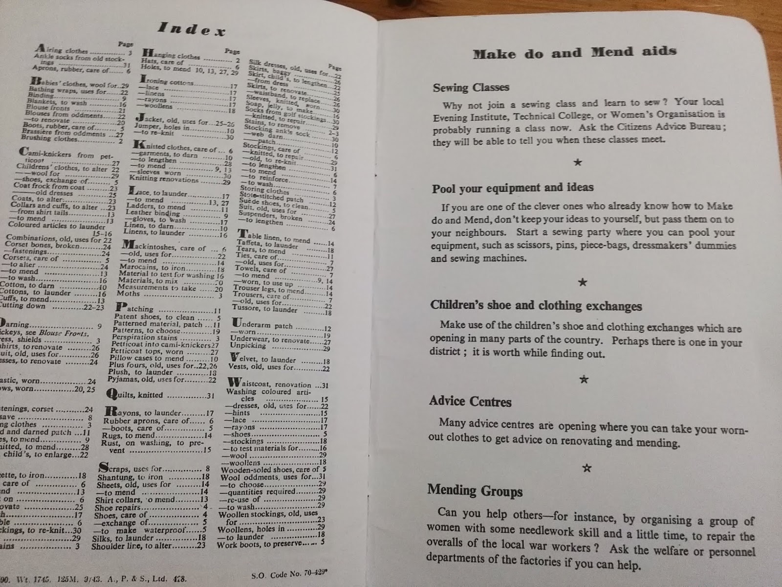 It was necessary for women to be able to sew and if you couldn't, Sewing Bee's were set up around the country to help you. The Queen Mother held one at Buckingham Palace.