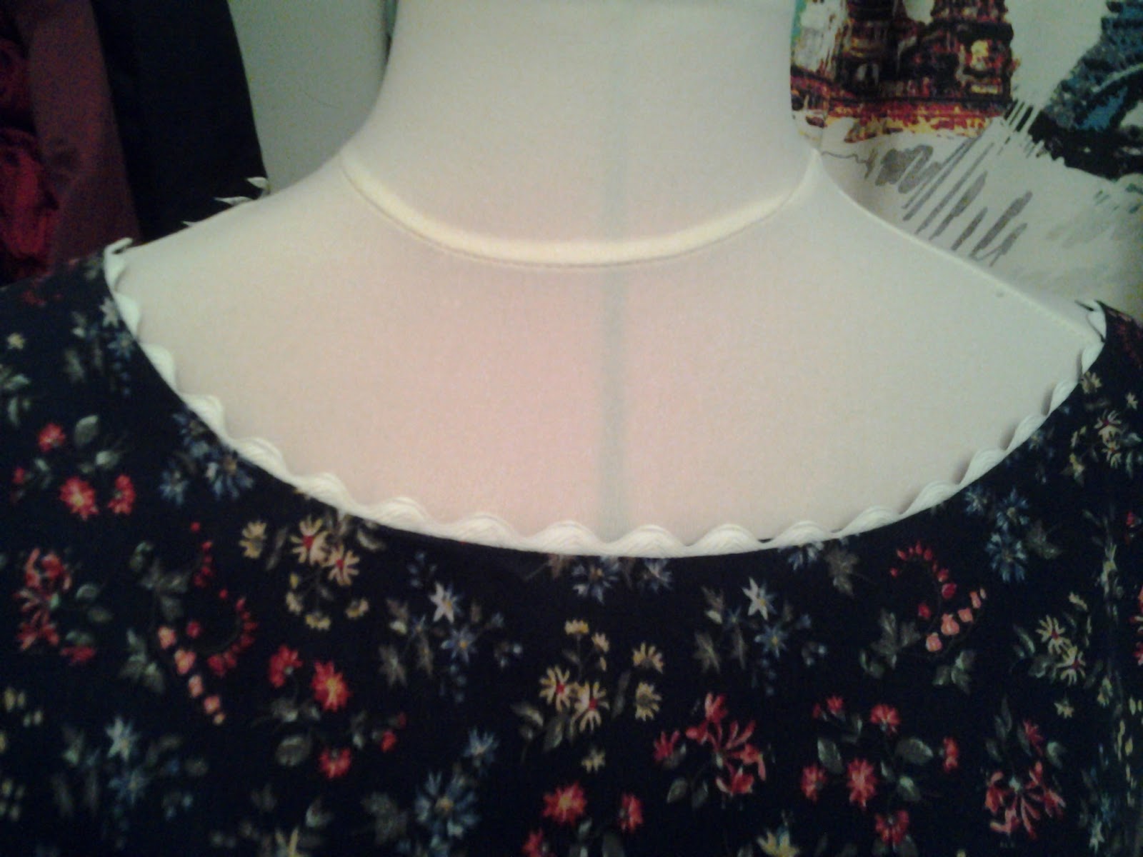 As the fabric is dark and I wanted to lift it near to my face I stitched some jumbo ric-rac braid to the neckline inside the seam allowance. This will form a really nice edging.