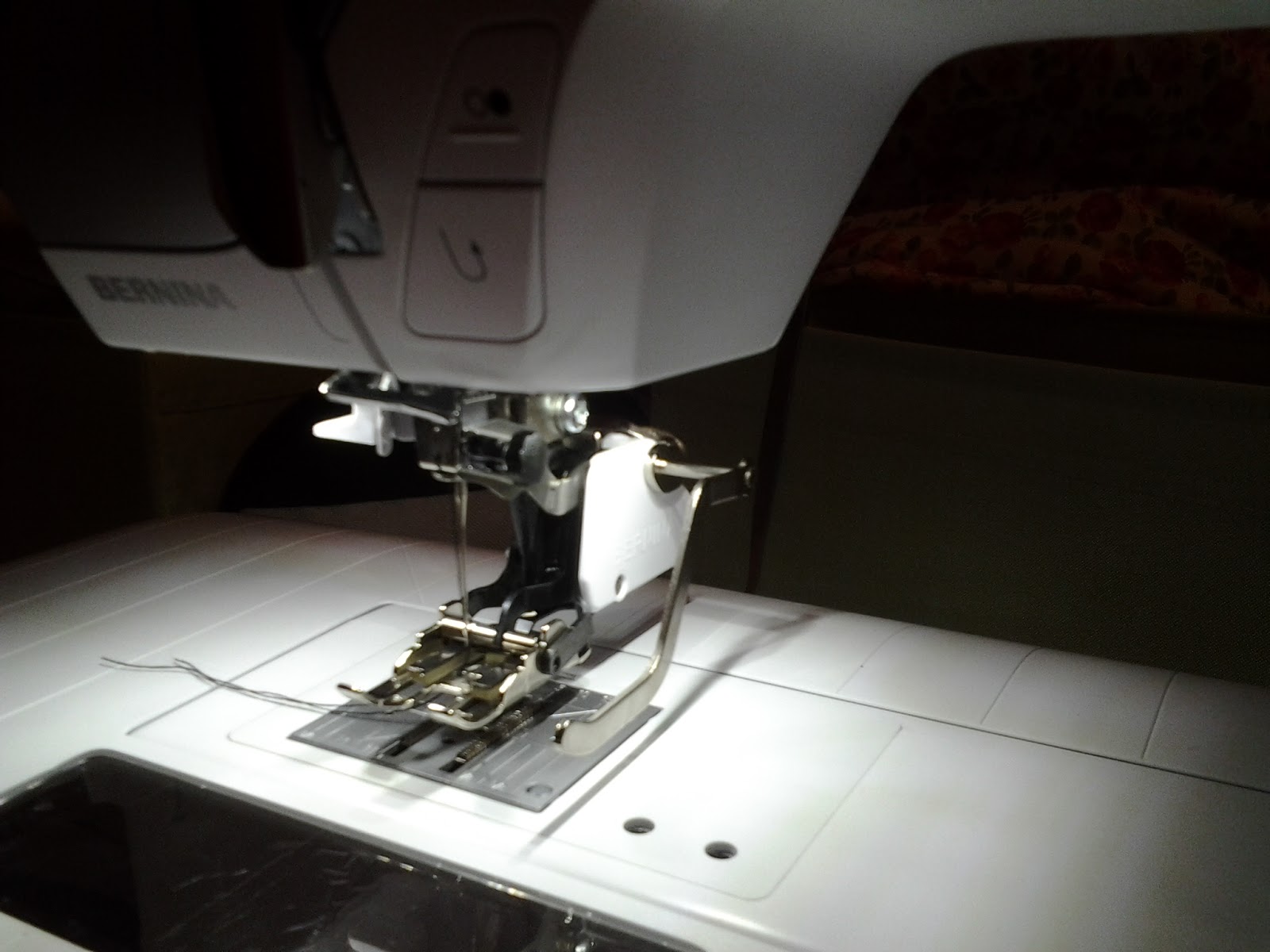 This is the walking foot in place on my machine. They are easy to fit and feel no different from your everyday foot, so you need no special technique to use one. As with any new sewing project practise your stitching on a spare piece of fabric first to make sure that your stitch length and tension are correct.