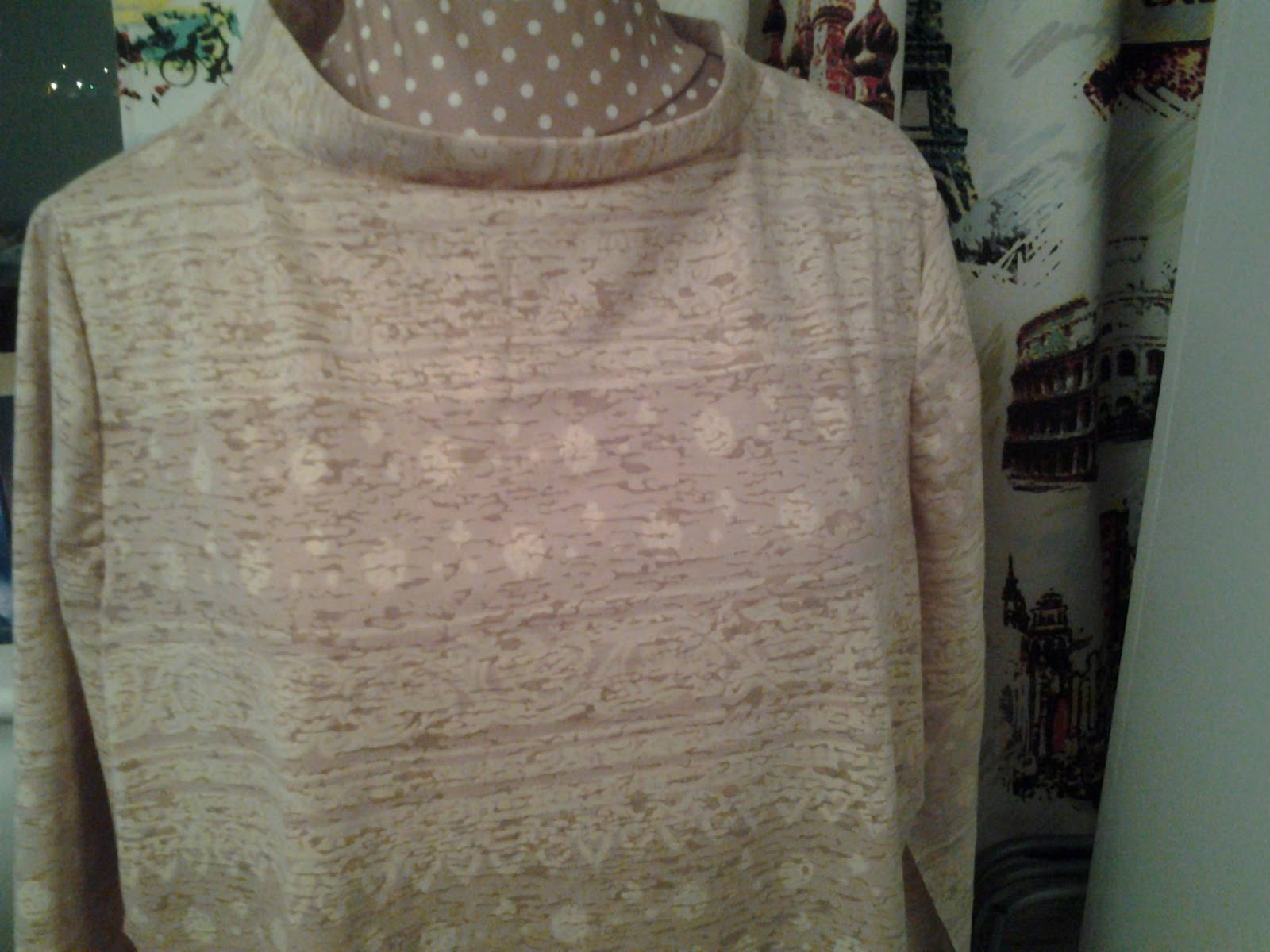 I found a piece of this unusual burnout fabric at Abakhan Fabrics. It is a soft feel stretch jersey, there was just enough to make a top.