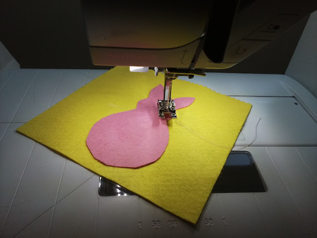 Sew the rabbit shape into the base shape as before and embroider the features as before too.
