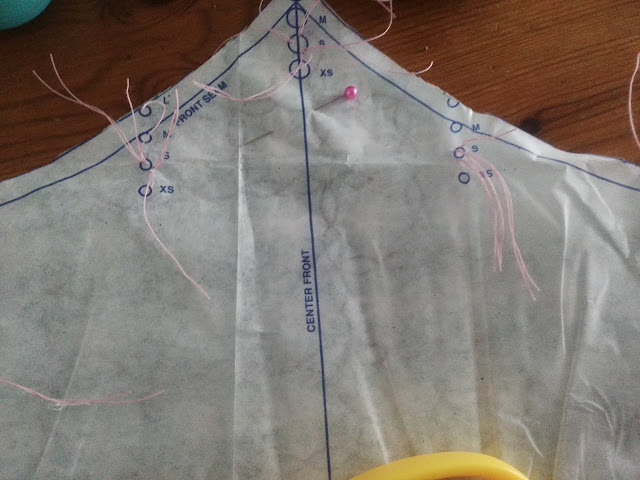 We need some way of transferring pattern markings onto fabric. My preferred way is with tailors tacks.