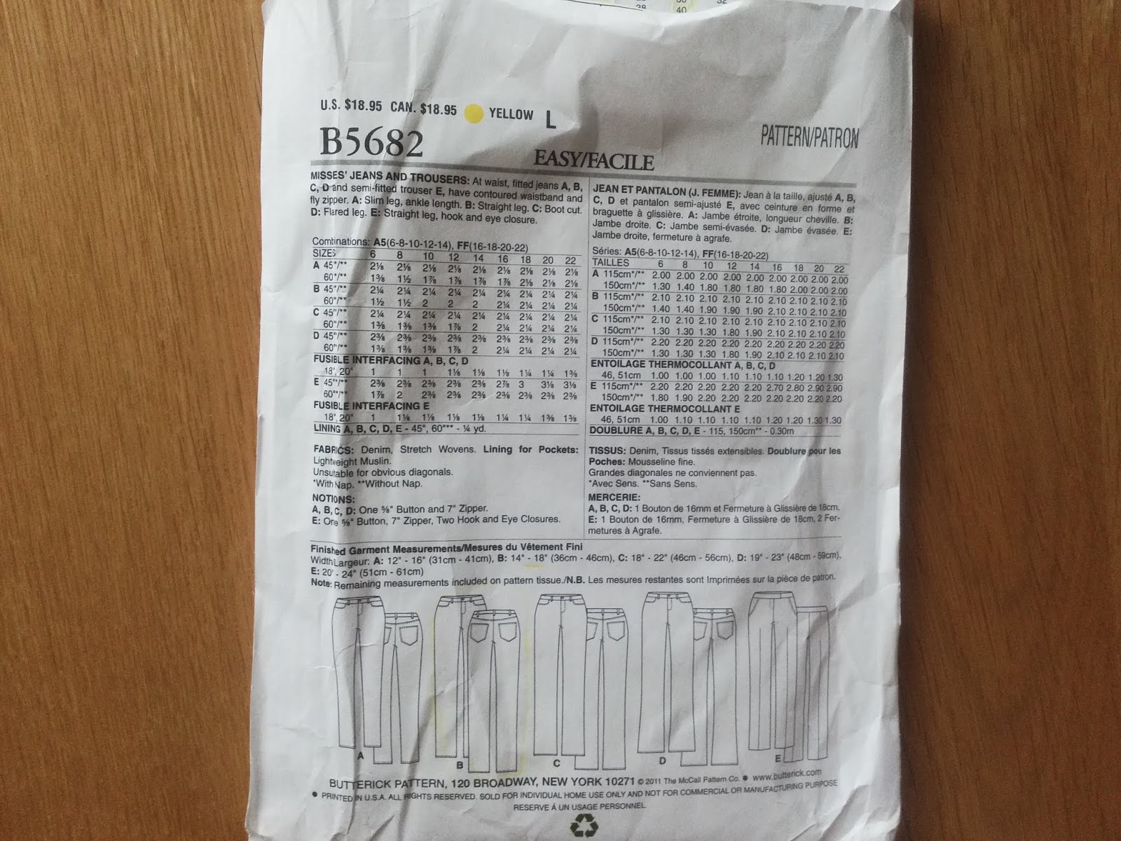 I tested a few different Jeans patterns and this is the one I recommend you buy first. It has a large variety of design choices and different sizes. This is the link to purchase it from Jaycotts. B5682 Trouser and Jeans pattern I chose this one because it is not complicated and the instructions are easy to follow.