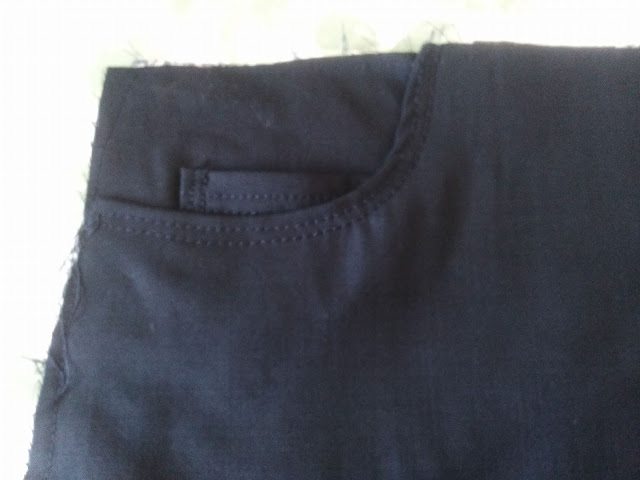 I decided to make another pair in a navy blue stretch suiting this time to practice the pockets, fly front and placing rivets.