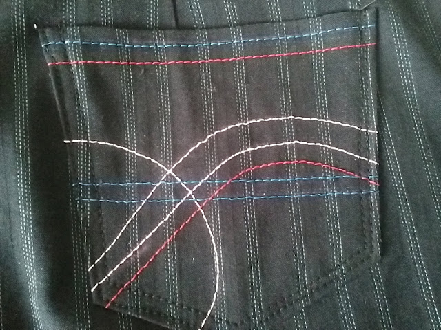I experimented with back pockets and tried various designs including this one. If you plan a design on both pockets don't forget to mirror the design on each.