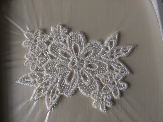 I think that the ability to produce your own stand-alone lace is one of the most appealing techniques that this machine is capable of. I remember learning to make lace in the traditional way and although pleasurable it took forever. I sat watching this machine produce the most beautiful lace in just a few minutes. There are many uses for it apart from clothing - home decor and linen are just two but you can also produce things like bookmarks and jewellery , doilies and many other items. You need to choose specific embroidery designs for stand-alone lace as the high stitch count is what holds it together. There are many designs on the internet. There are other designs for embroidered lace which is stitched onto a fabric background, like the butterfly at the bottom of my design for example.