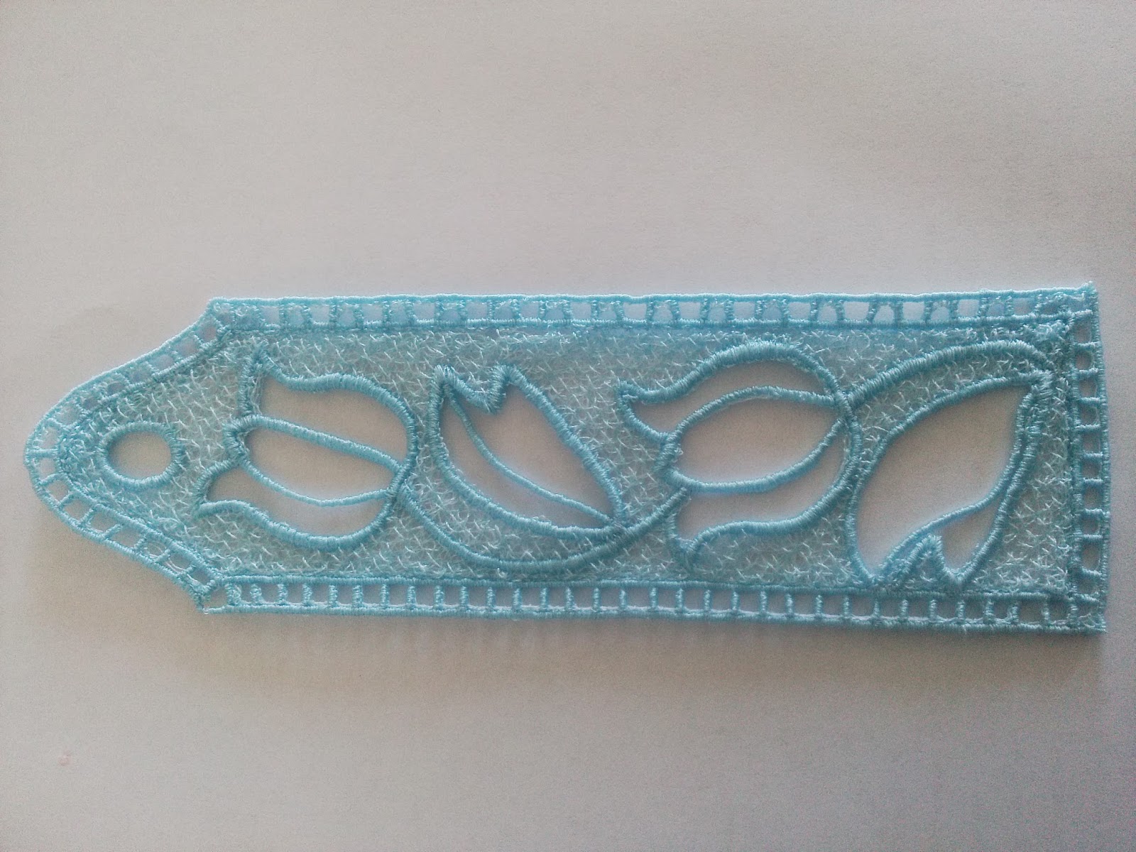 There are other applications for free-standing lace as I was explaining earlier, this is a bookmark which I made.