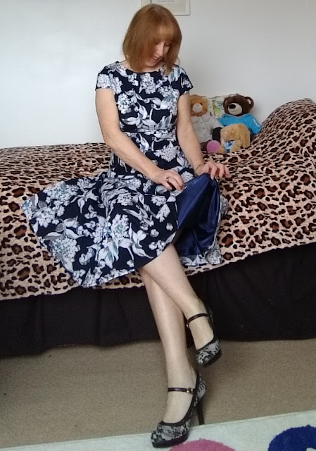 I used the same fabric to line the bodice and sleeves for coolness and comfort but I chose a good quality lightweight woven lining fabric in Navy for the skirt. This gives a swing to the skirt and makes that delightful swish as you walk.
