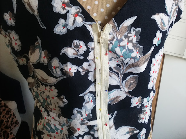 When it comes to trying the bodice on for fit, how do you temporarily close the back? This is what I do. I pin and tack a zip to the back of the garment. It doesn't matter about the length of colour or type of zip,all that matters is that you can close it. It doesn't take long but does help to create a good fit.