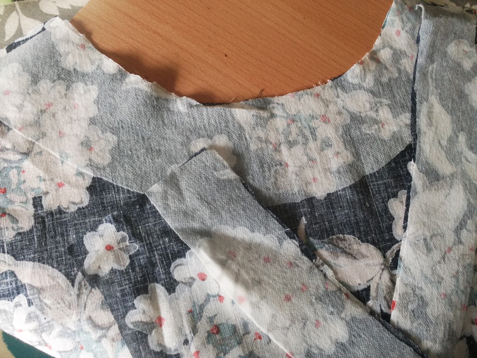 We now need to interface the neckline of the bodice lining. For this you need a good quality iron on interfacing