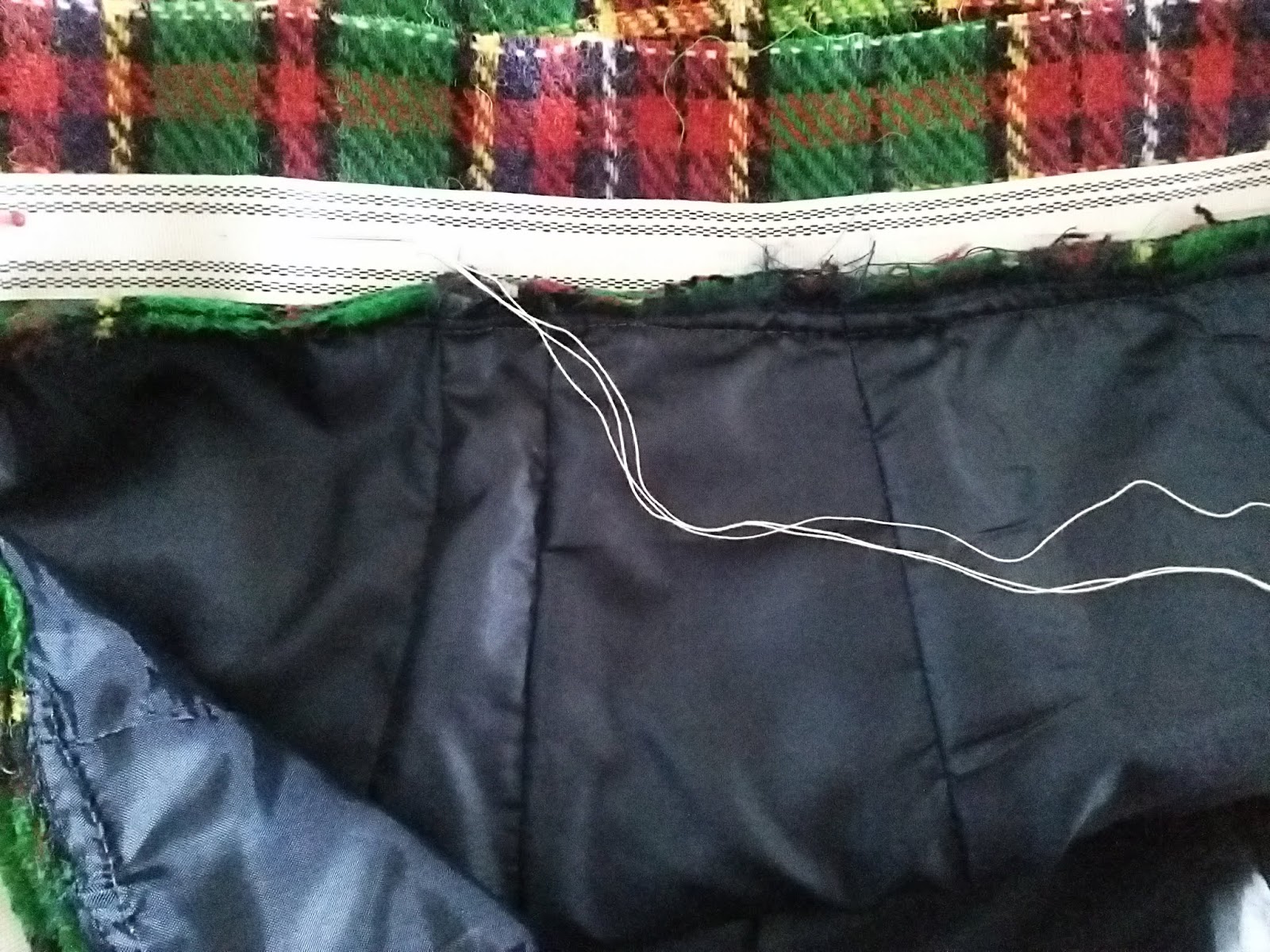 You now need a stiffening for the waistband, it can be Petersham, horse hair braid or a substantial woven interfacing. Starting at the lower edge loosely tack it in place.