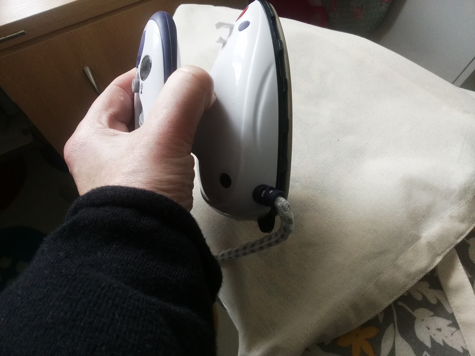 Notice too that I used the word pressing not ironing.When you are ironing your iron is moving back and forth over the fabric constantly, with pressing the iron is set down and then lifted up before moving to the next spot.