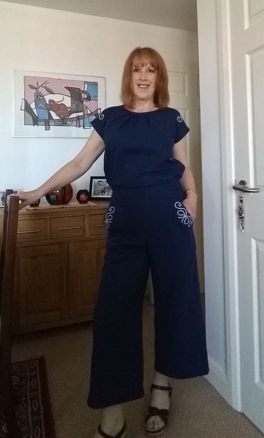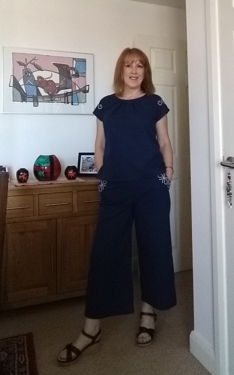 When I first saw this pattern I wasn't sure if it would suit me or not. Wrong! I decided as soon as I tried it on that I love this outfit.It is perfect for holidays, flattering and easy to sew. I like the 3/4 length wide trousers, they are cool to wear in the sun - I like to cover up mostly and I want garments which are easy to wear and light to pack.