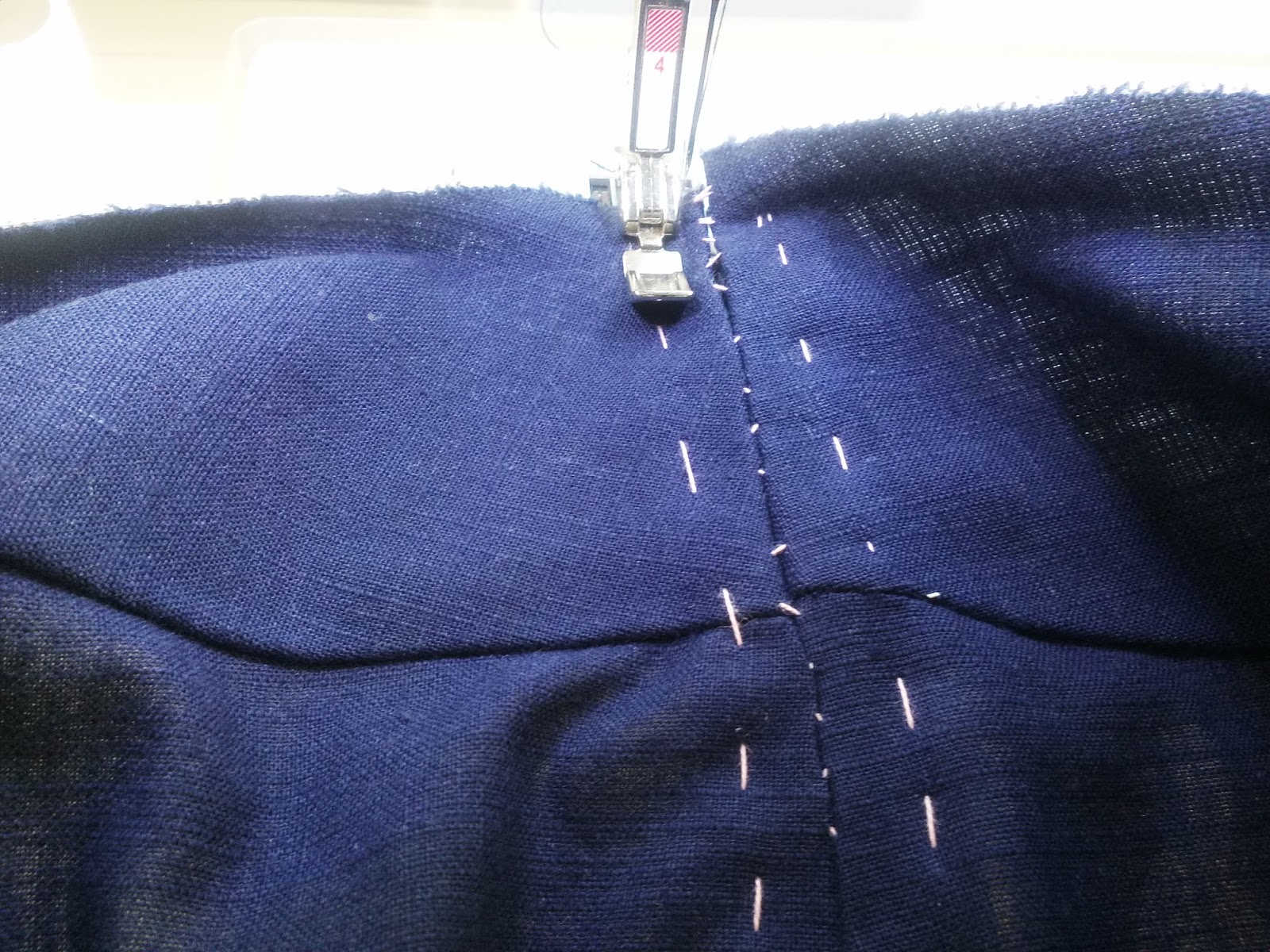 Then tack the seam together using a tacking thread. Tacking thread is preferable to normal thread for this purpose, it is made from cotton and the fibres are rough which means that the tacking will stay firmly in place until you pull it out. Do try it, it really does make a huge difference