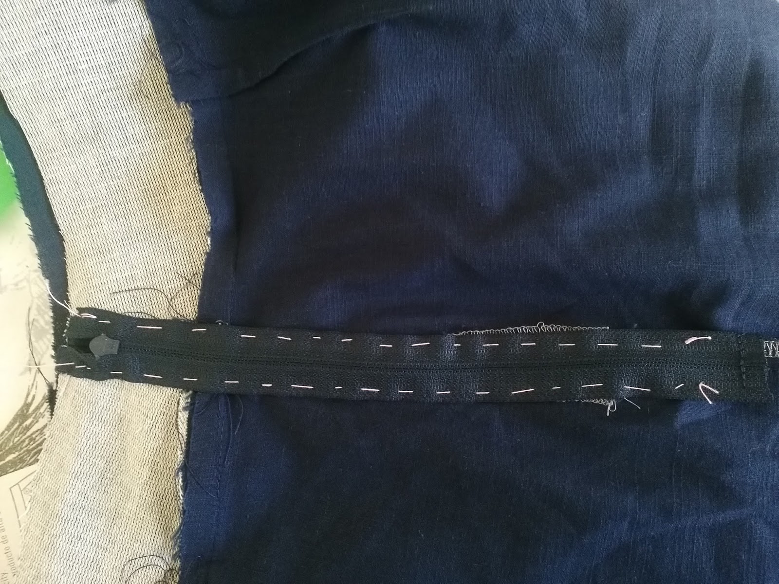 That's my zip in place. Press it using a pressing cloth taking care not to melt the plastic teeth. If your zip does not finish exactly at the top of your trousers, or if your zip opens easily (YKK zips stay closed until you open them) you will need to add a hook and eye to close the very top.