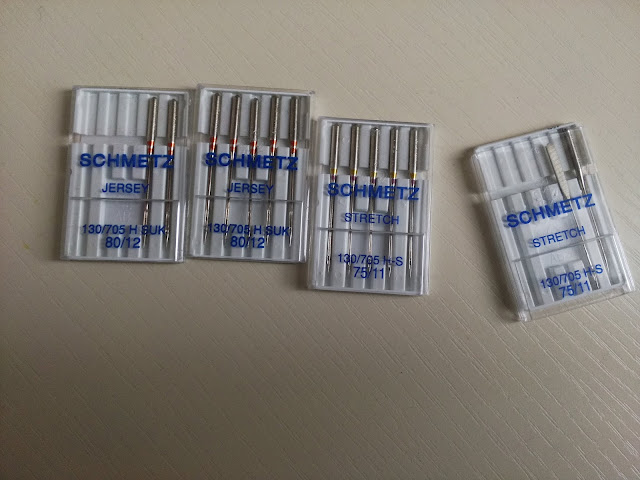 I know I am always going on at you about changing your needle every time you start a new project, this time you need to use a stretch or jersey needle. There is a variety of needles suitable for stretch fabrics, they differ from normal needles in that they do not pierce the fibres of your fabric - they gently push them apart therefore there is less danger of the fabric laddering or of holes appearing. Needles for stretch fabrics