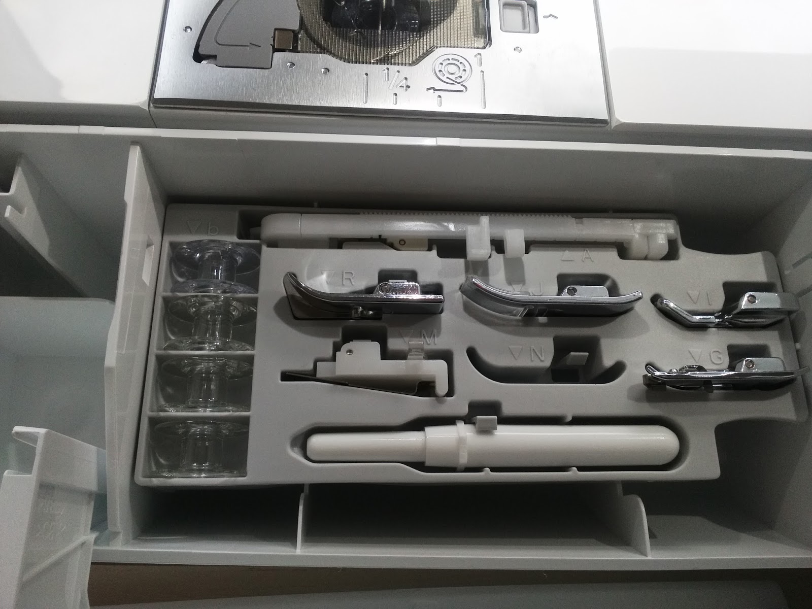 There is storage space built into your machine both at the front and the rear so you can keep your spare feet and bobbins safely where you can access them.