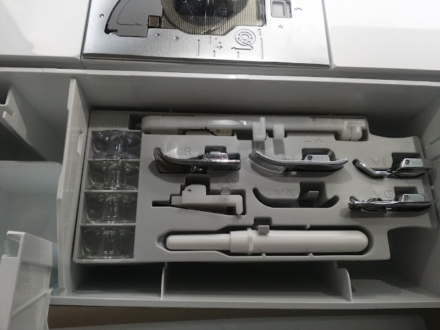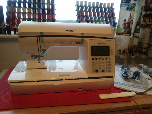 It has an advanced square feed drive system (SFDS) which delivers a really good feed on all fabrics but - and this is my favourite - it enables the machine to sew sideways as well as backwards and forwards and it means too that it has the capacity of sewing extra wide decorative stitches. This is my machine which I unpacked as soon as it was delivered. I know some of us feel out of our comfort zone with a new machine, but please do not worry, take it slowly and you will be fine.Don't forget that Jaycotts can arrange tuition for you from Brother which I do recommend you take advantage of if at all possible.