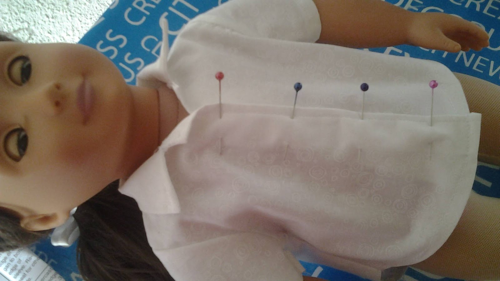 Put the shirt on your doll to check the fit and mark the position of the buttons. I am using poppers, the details of which can be found in my precious blog post as I used them when making the dress. It is ok to mark the position of the poppers with a pencil dot as it will not be seen once the poppers are in place.