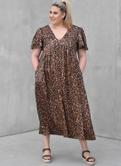 View full detailsKnow Me paper sewing pattern for Corset style shirtdress in midi length has collar, collar band, front invisible zipper, lantern sleeves, and side ...
