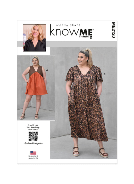 View full detailsKnow Me paper sewing pattern for Midi length dress has collar, front snaps opening, long sleeves with snap cuffs, chest patch pockets with flaps, w...