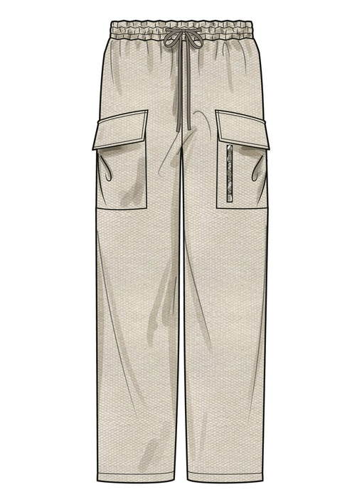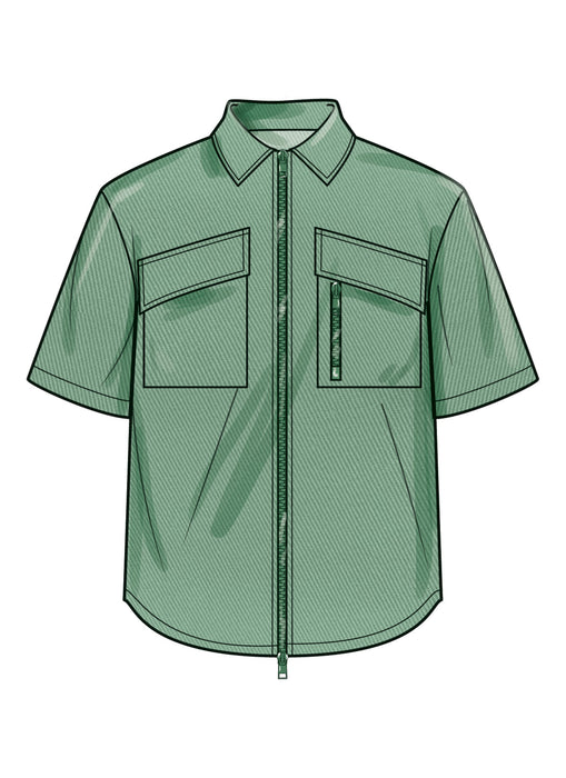 Simplicity sewing pattern for Relaxed fit shirts with pointed collar have zip front opening, flap patch pockets with zipper detail, dropped shoulders, back yoke and sleeve variations. Pull-on shorts and pants have elastic waistband, front ties and front and back pockets.