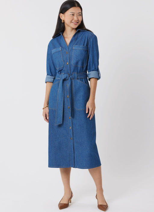 View full detailsSimplicity sewing pattern for Dresses in three lengths have front button opening, collar, collar band, dropped shoulders, front patch pockets, back...