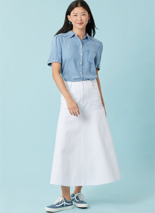 View full detailsSimplicity sewing pattern for Flared skirts in two lengths have waistband with belt loops, front fly zipper with button closure, front pockets and ...