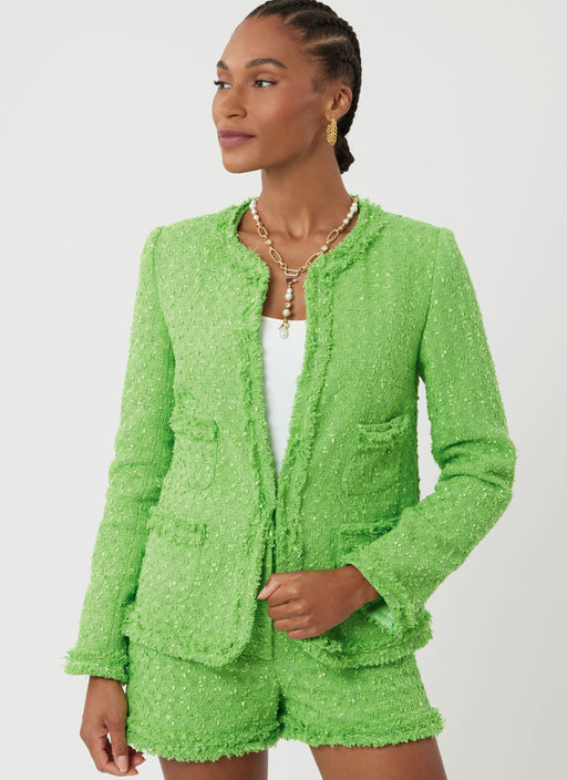 View full detailsSimplicity sewing pattern for Fitted, lined cardigan style jacket has self-bias fringe, front hook and eye closure, shoulder pads, long two-piece s...