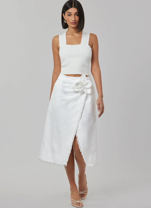View full detailsSimplicity sewing pattern for Wrap skirt in two lengths with detachable 3D Flower and frayed edges. Wrap skirts, fitted through hip, have contoured...