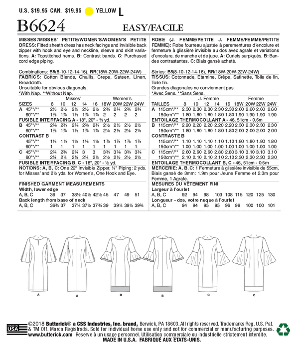 Butterick 6624 Misses'/ Women's/ Petite Dress Pattern