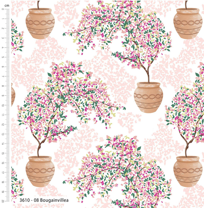 Mediterranean Organic Cotton Fabric, Bougainvillea