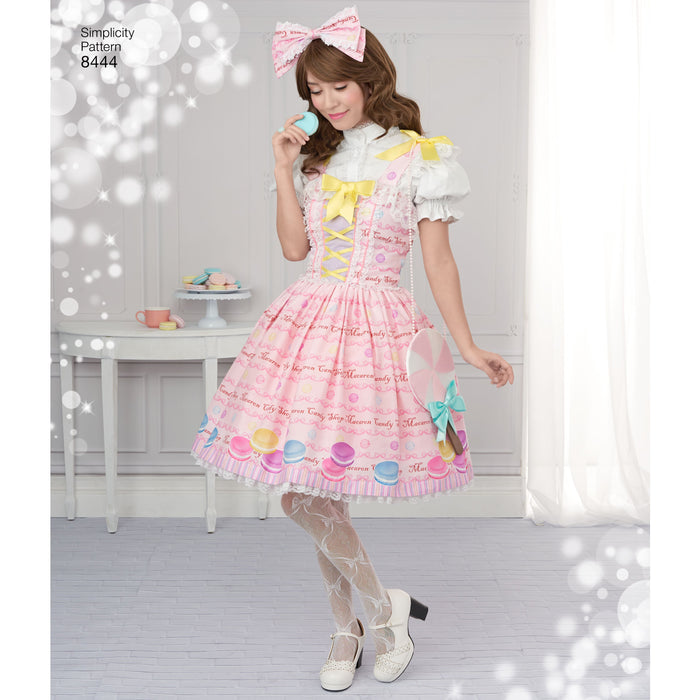 Sewing pattern for ruffle dresses. Perfect for your next cosplay event. Dresses feature cincher or ribbon around the waist. Add bows to achieve the look even more. Andrea Schewe Designs for Simplicity Also see accessory pattern S8443