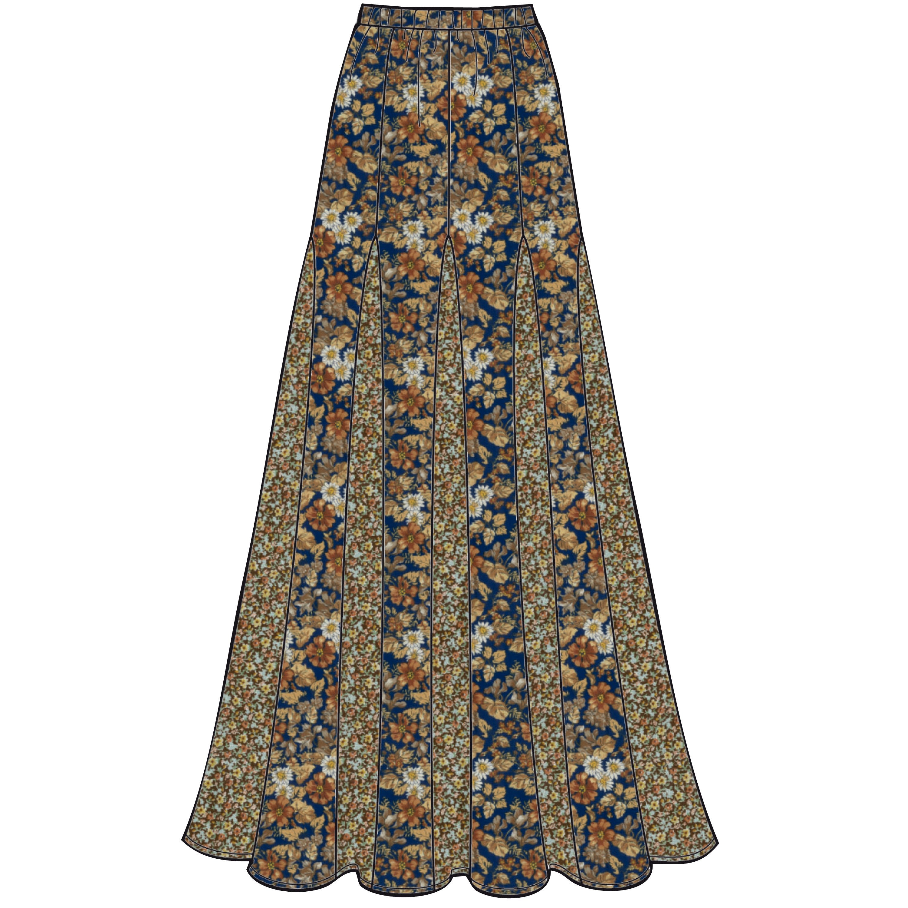 Misses’ pull-on skirts with elasticated waist. Skirts with godet adding fullness to short, midi or maxi length.