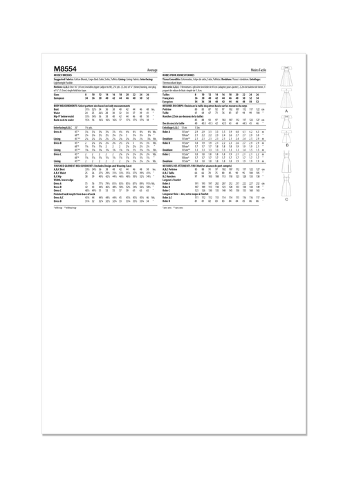 Fabric Suggestion : Cotton Blends, Crepe Back Satin, Satin, Taffeta. Lining: Lining Fabrics. Interfacing: Lightweight Fusible.