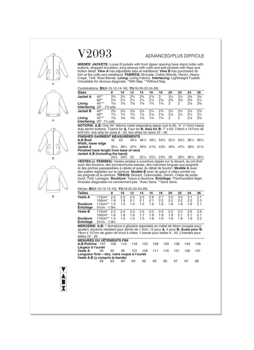 Fabric Suggestion : Brocade, Cotton Blends, Denim, Heavy Crepe, Twill, Wool Blends. Lining: Lining Fabrics. Interfacing: Lightweight Fusible.